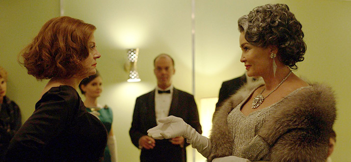 Оливия де Хевиленд, очень хорошая подруга Бетти Дэвис, которую играет Кэтрин Зета Джонс, - актриса, сыгравшая Мелани, душечку, жену Ашли в "Унесённых ветром". Вот кто это, оказывается! И вот почему она сравнивает их с Бетти характер отношений как между Мелани и Скарлетт. Ей сейчас 100 лет, и она всё ещё жива!!! Дай им Бог всем здоровья и долголетия.
