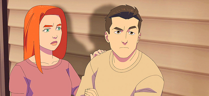Чекнул видос с комиксом по этой битве. Там Нолан в ужасе увидев, что Завоеватель лично прилетел и в драке с ним огребает (а не дерется на одном уровне как в мульте). Завоеватель прописывая леща Нолану, говорит ему, что сын у него достойный боец. Фиолетовый недомерок ничего не может сделать ему совсем (в мульте все же успевает нанести ощутимые удары). Ну и главное отличие, в комиксе Завоеватель говорит Неуязвимому, что его спас Сесил.