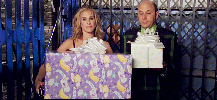 Подруги отправляются на праздник в честь рождения ребенка, где Кэрри оказывается единственной гостьей без подарка, и, к тому же, кто-то крадет ее туфли. Сможет ли героиня выкрутиться из этой ситуации без скандала? В это время Миранда влюбляется в нового соседа, а Шарлотта шокирована необычными привычками Гарри.